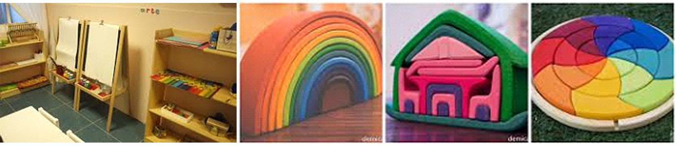 ⦁ WALDORF: los juguetes de vivos colores y materiales naturales son básicos para el juego libre y simbólico.